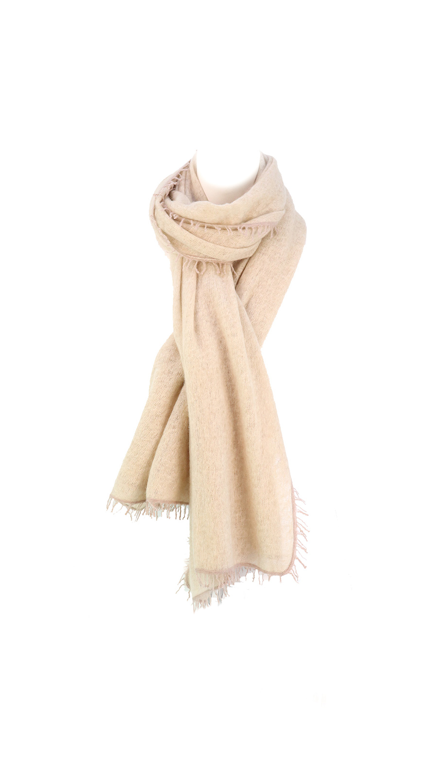 FORLANI 100% gefilzter cashmere Schal, per Hand gefilzt. made in nepal, casual look ca. 70x200 cm. hellbeige mit taupe gestricktem frame