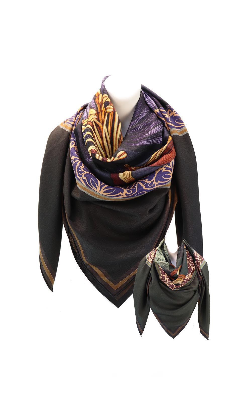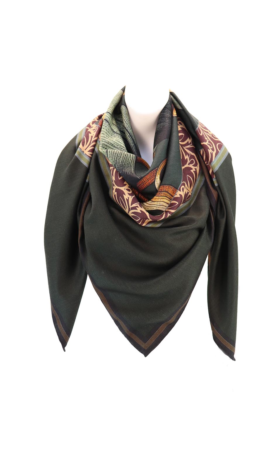 FORLANI 80% Wolle 20% Seide. Weltneuheit! Zweiseitig, in unterschiedlichen Farben bedruckt. Einzigartiges Produkt ca. 130x130 cm, Kanten handgerollt.