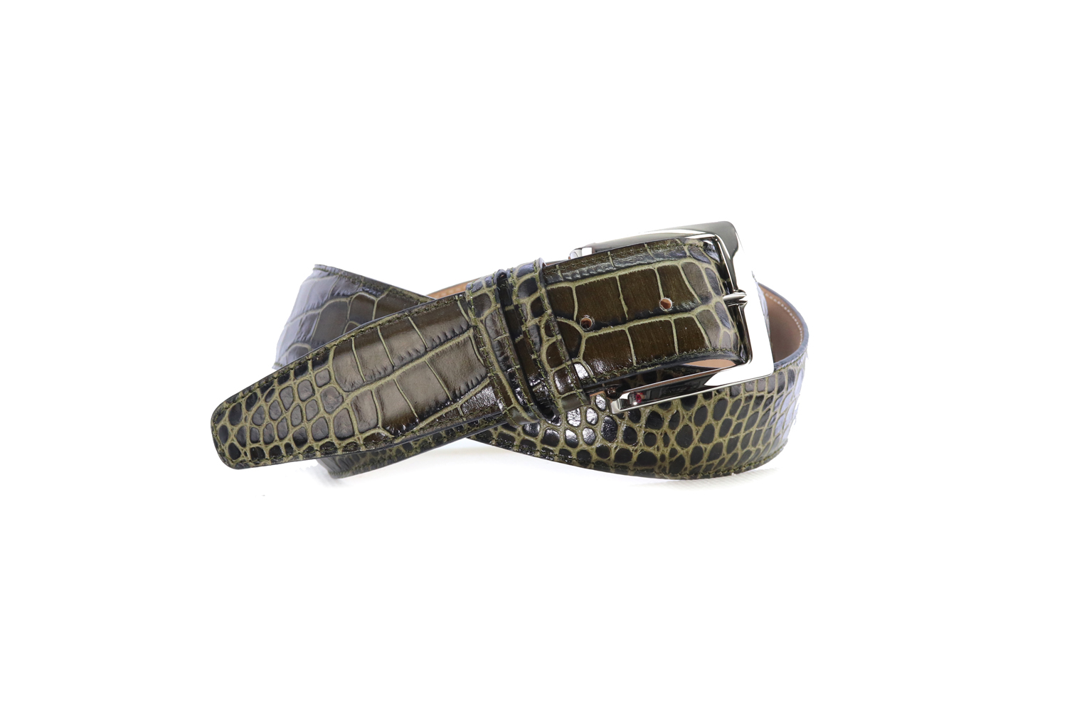 FORLANI GÜRTEL premium Qualität in croco genarbten Rindsleder Farbe militare