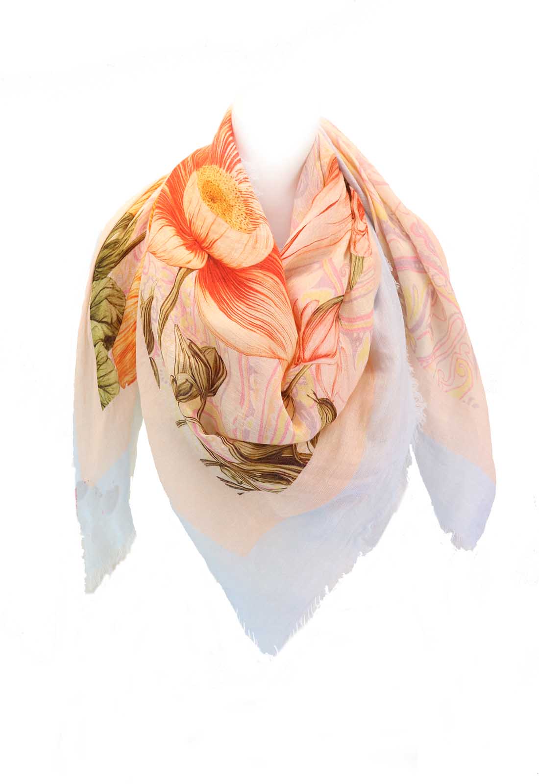 VELVET SAINT FIELDS sommerliches Tuch aus 70% Leinen 30% Baumwolle offen gewebt mit Print. Einzigartige, softe Qualität! ca. 120x120 cm, perfektes Volumen.