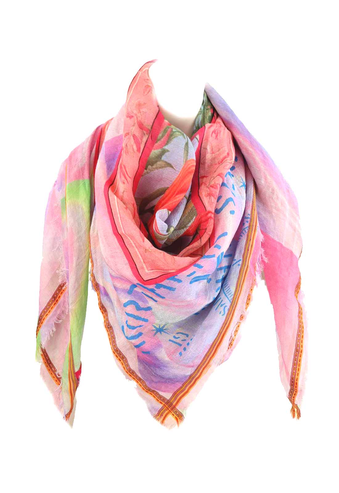 VELVET SAINT FIELDS sommerliches Tuch aus 70% Leinen 30% Baumwolle offen gewebt mit Print. Einzigartige, softe Qualität! ca. 120x120 cm, perfektes Volumen. VSF typischer, gewebter Frame aus 5% recycled poly.