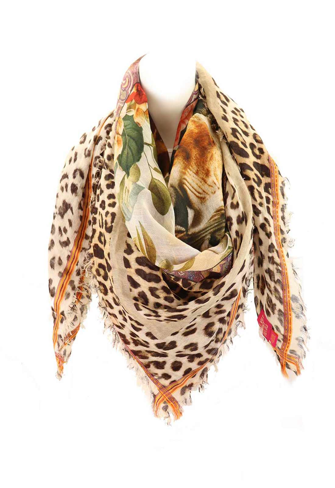 VELVET SAINT FIELDS sommerliches Tuch aus 70% Leinen 30% Baumwolle offen gewebt mit Print. Einzigartige, softe Qualität! ca. 120x120 cm, perfektes Volumen. VSF typischer, gewebter Frame aus 5% recycled poly.