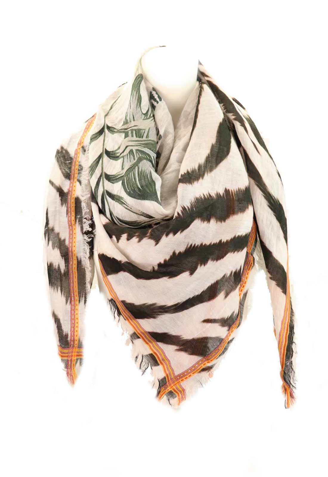 VELVET SAINT FIELDS sommerliches Tuch aus 70% Leinen 30% Baumwolle offen gewebt mit Print. Einzigartige, softe Qualität! ca. 120x120 cm, perfektes Volumen. VSF typischer, gewebter Frame aus 5% recycled poly.