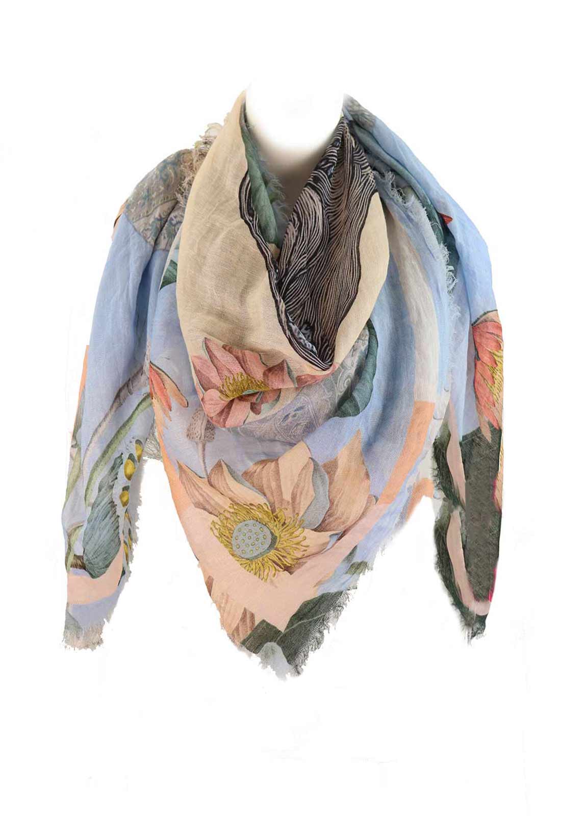 VELVET SAINT FIELDS sommerliches Tuch aus 70% Leinen 30% Baumwolle offen gewebt mit Print. Einzigartige, softe Qualität! ca. 120x120 cm, perfektes Volumen.