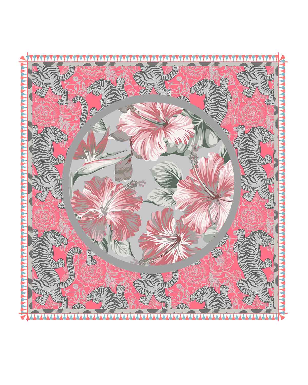 VELVET SAINT FIELDS sommerliches Tuch aus 70% Leinen 30% Baumwolle offen gewebt mit Print. Einzigartige, softe Qualität! ca. 120x120 cm, perfektes Volumen. VSF typischer, gewebter Frame aus 5% recycled poly.