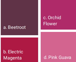 Orchid flower und Pink Guava sind die wichtigen Pinktöne. Vergleichsweise dunkel und für den Sommer eher als Akzentfarbe geeignet.